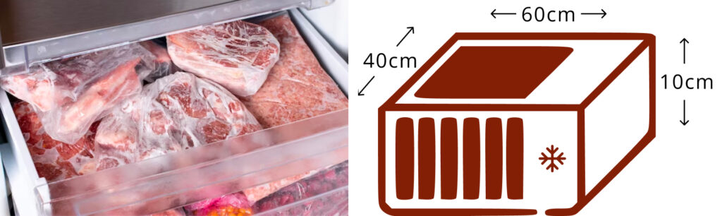 Dit pakket neemt driekwart van de ruimte in de vriezer in beslag, waardoor er genoeg ruimte overblijft voor andere voedingsmiddelen. Het maakt efficiƫnt gebruik van de ruimte en zorgt voor handige opslag. De verpakking is goed afgesloten om voedsel lang vers en lekker te houden.